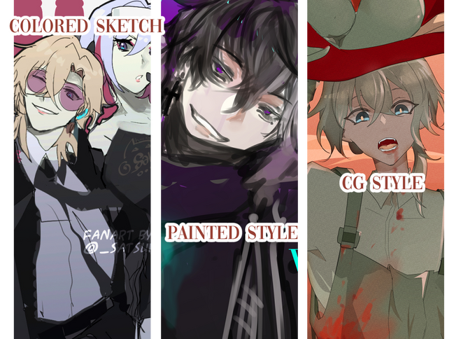 | Service | Sketch | Colored Sketch | Painted Style | CG Style |